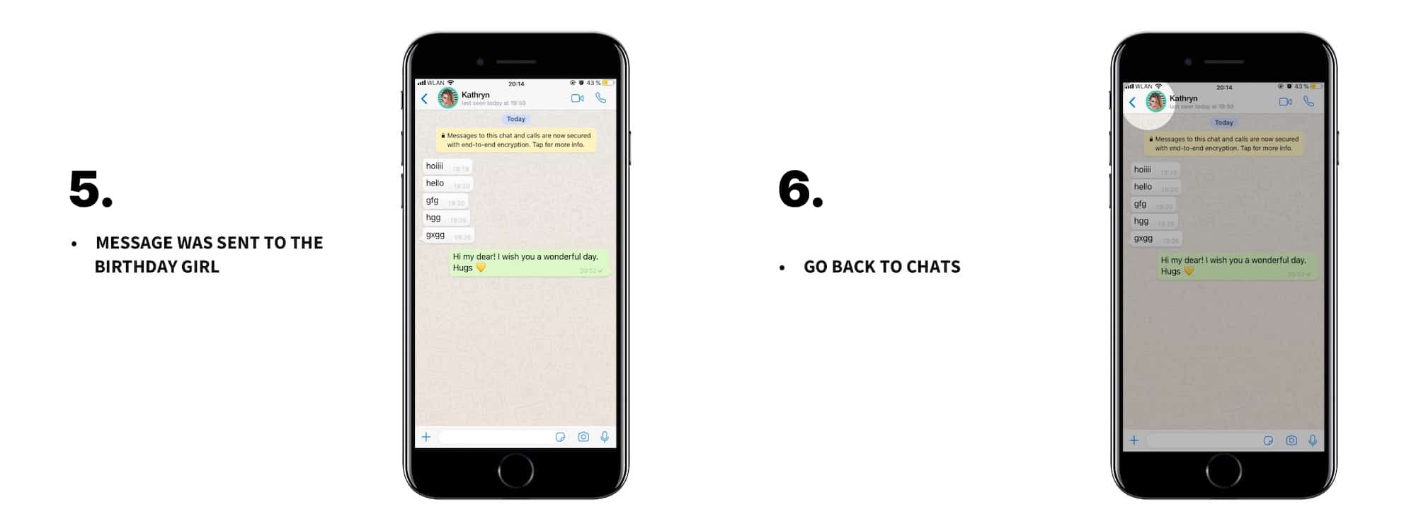 I began with a paper prototype. With minimal effort, I created a testable product and could quickly make adjustments after testing. My idea is that the user receives a notification from WhatsApp as soon as someone from their contact list has a birthday. Upon opening WhatsApp, the user is directed straight to the chat with the person, and a pre-scripted birthday message appears in the input field. Now, the well-wisher can easily send the message or make some adjustments beforehand.